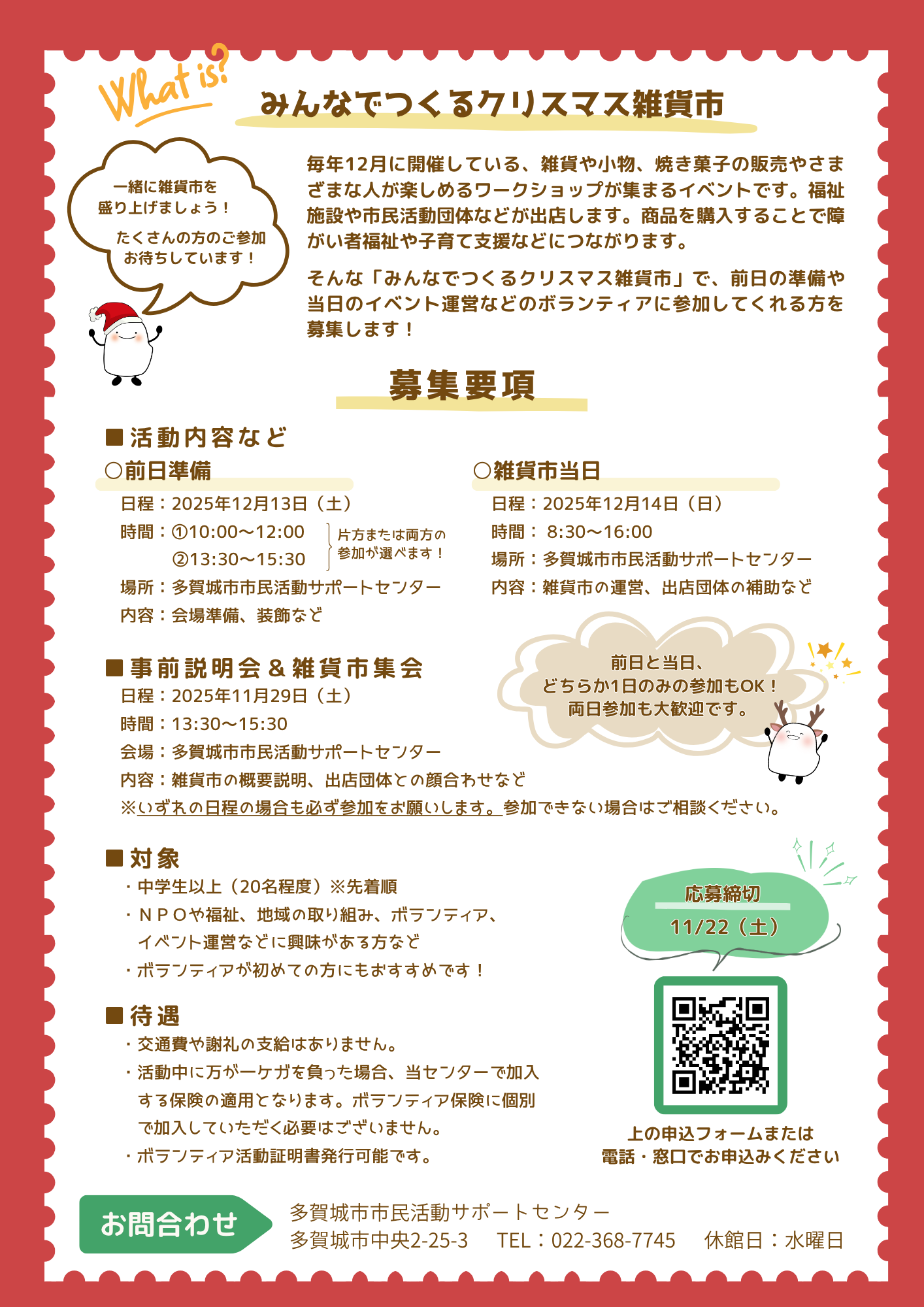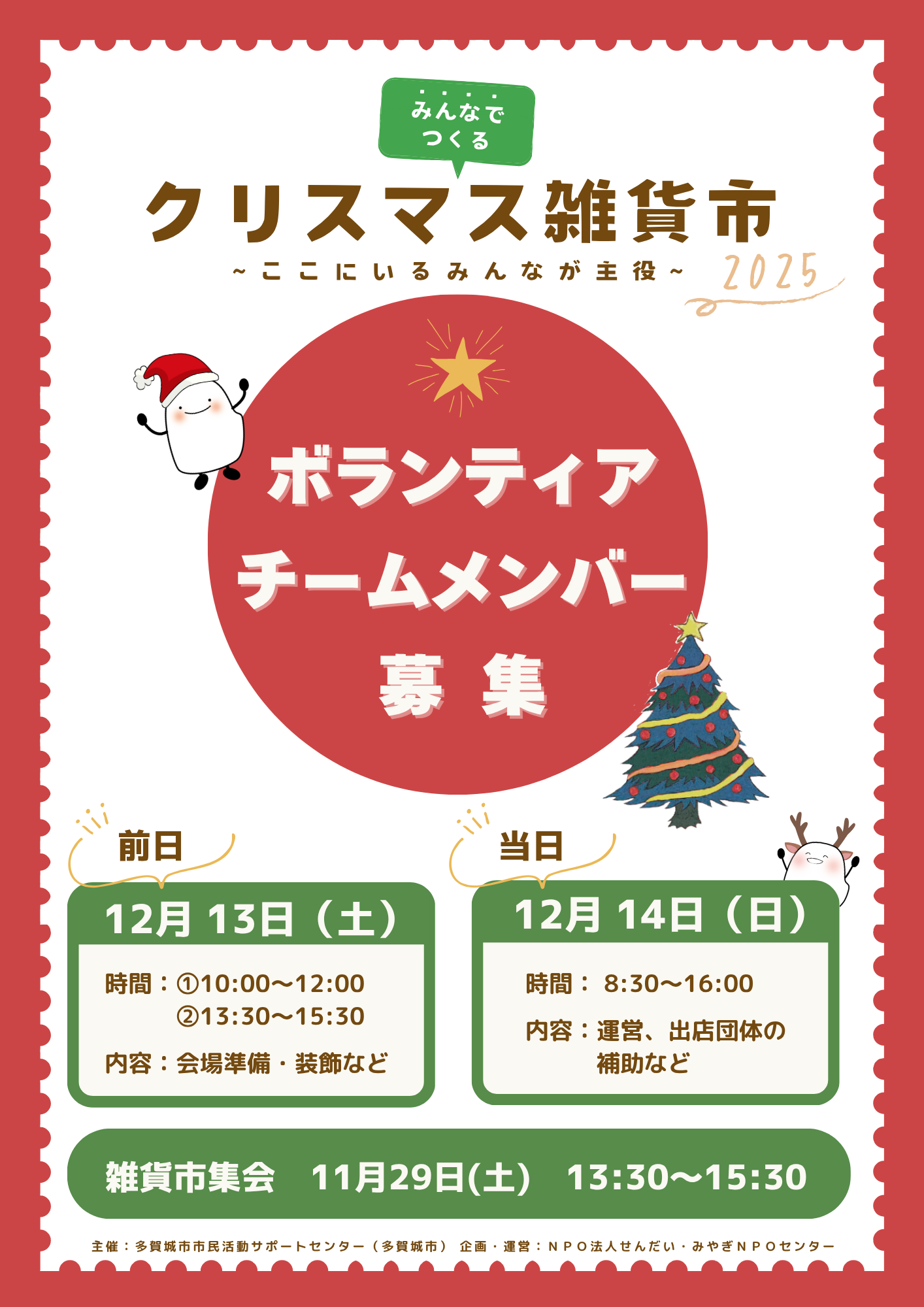 「みんなでつくるクリスマス雑貨市2025」ボランティアチームメンバー募集します!