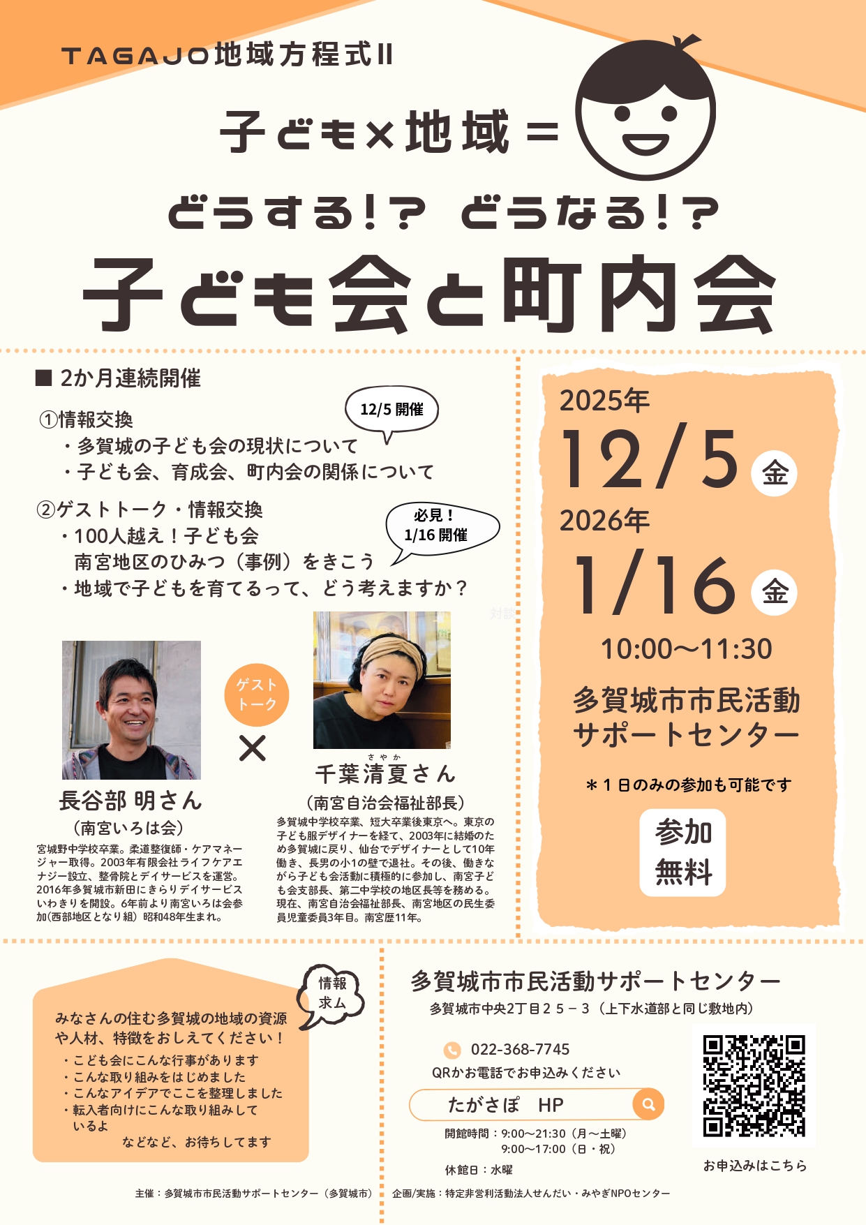 2カ月連続開催!TAGAJO地域方程式Ⅱ 子ども×地域=子ども会と町内会