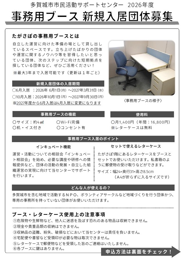 事務用ブースを活用して、団体の活動をより充実したものにしませんか。