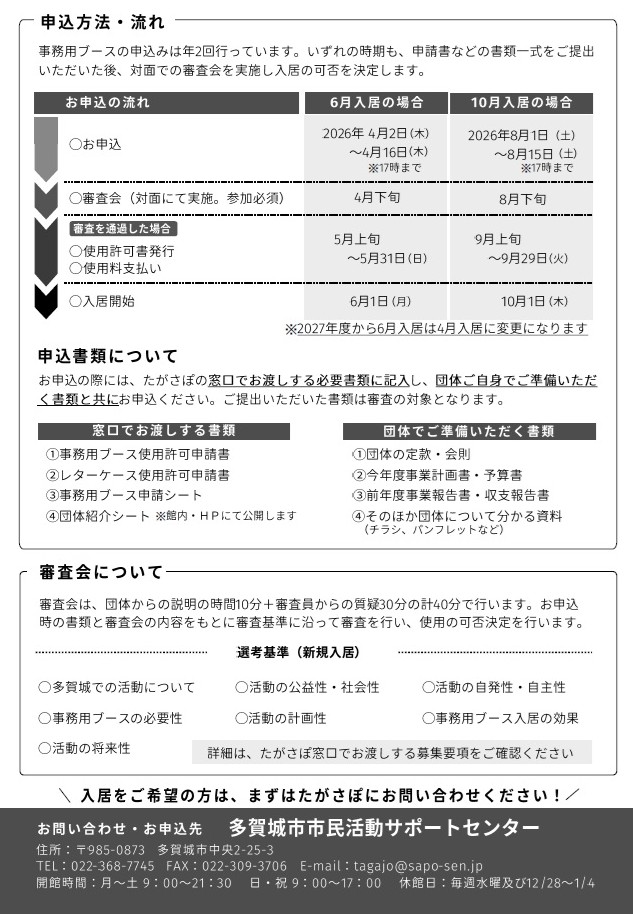 ・その他:当センターの住所を団体の連絡先としてはご利用できませんのでご注意ください。