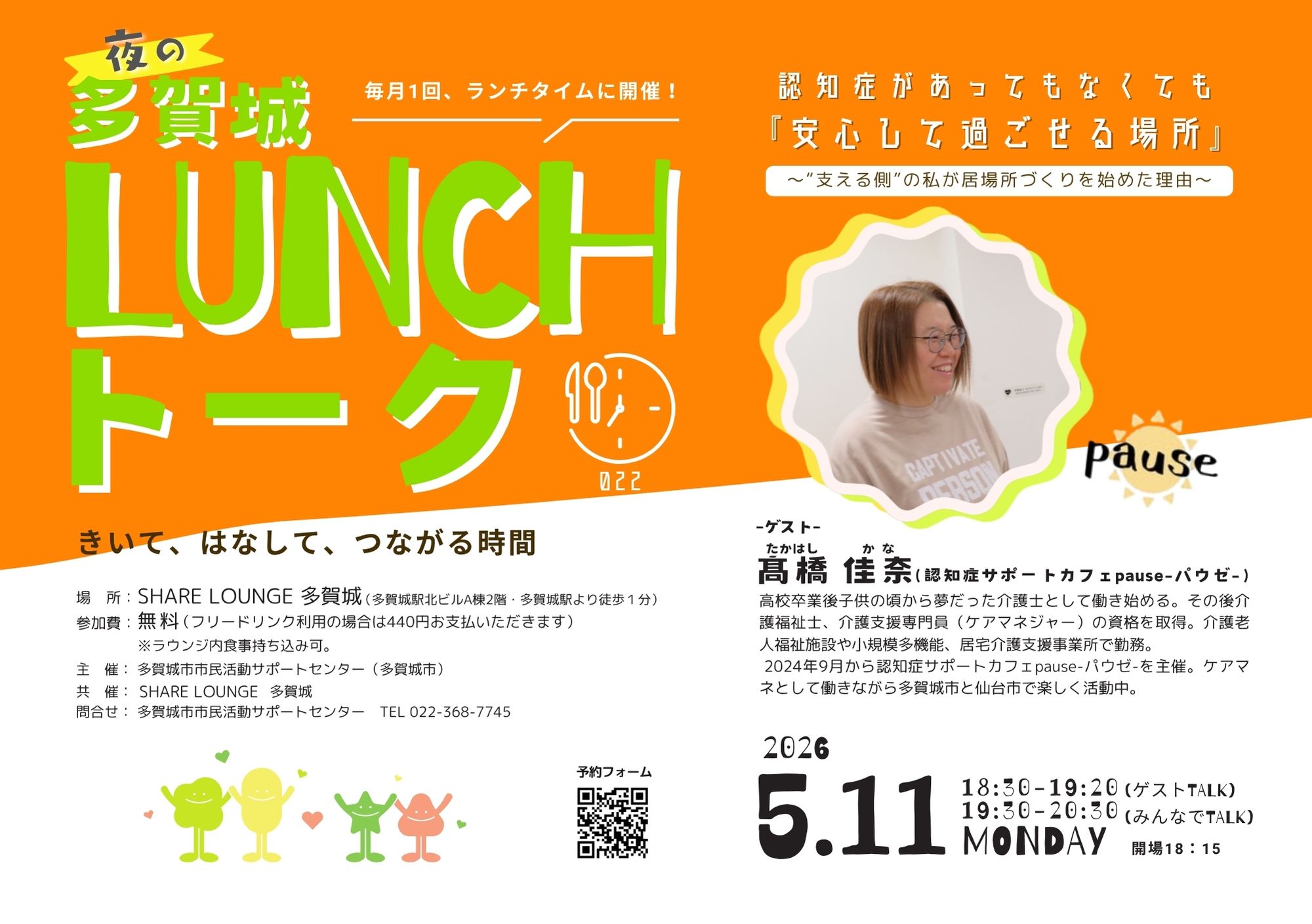 5月11日(月) 開催!夜の多賀城LUNCHトーク㉒ 認知症があってもなくても『安心して過ごせる場所』~“支える側”の私が居場所づくりを始めた理由~