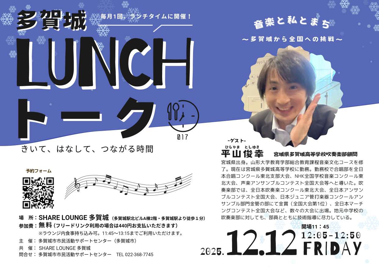 12月12日(金) 開催!多賀城LUNCHトーク⑰ 音楽と私とまち~多賀城から全国への挑戦~