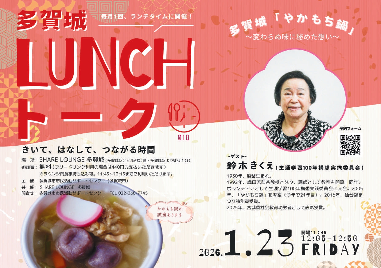 1月23日(金) 開催!多賀城LUNCHトーク⑱ 多賀城 「やかもち鍋」~変わらぬ味に秘めた想い~